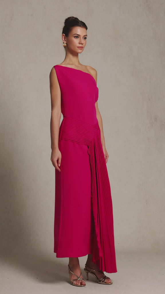 Paulina Oblique Shoulder Sleeveless Folds RosePink Midi Dress